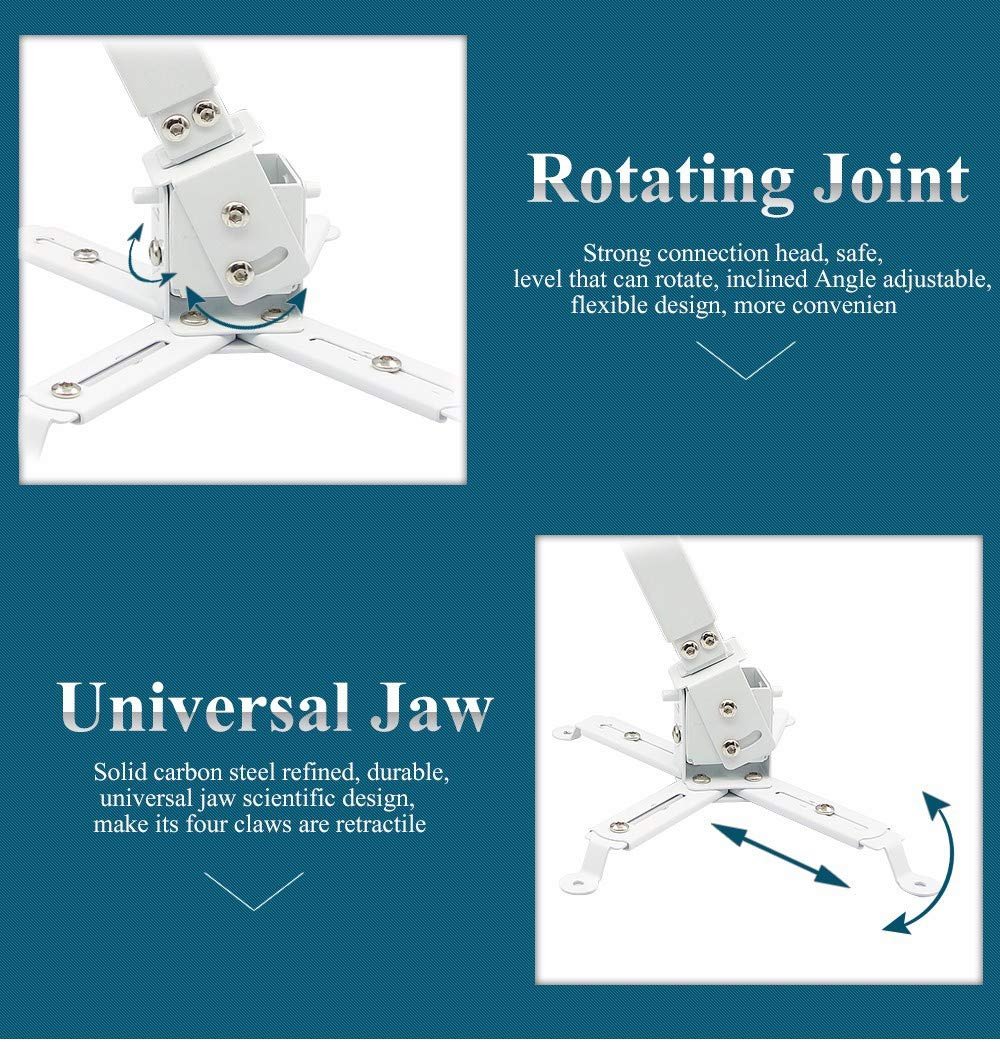• Solid heavy gauge steel construction with smart design for faster installation. Product coated with rust free powder, white finishing. Made of heavy-duty steel, the Projector Ceiling Mount Bracket ensures reliable strength and built-to-last performance. The metal projector mount effortlessly supports the weight of the Projector , and it ensures safety and peace of mind when properly installed.