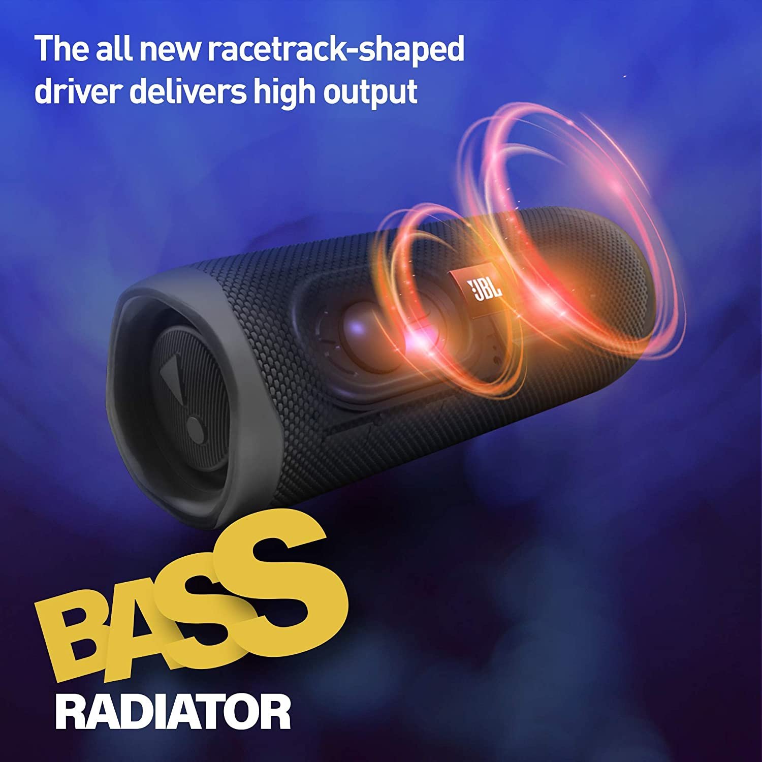 Hear the bass, feel the bass, see the bass. Dual external passive radiators and all new racetrack-shaped driver delivers high output. Enjoy booming bass in a compact package.