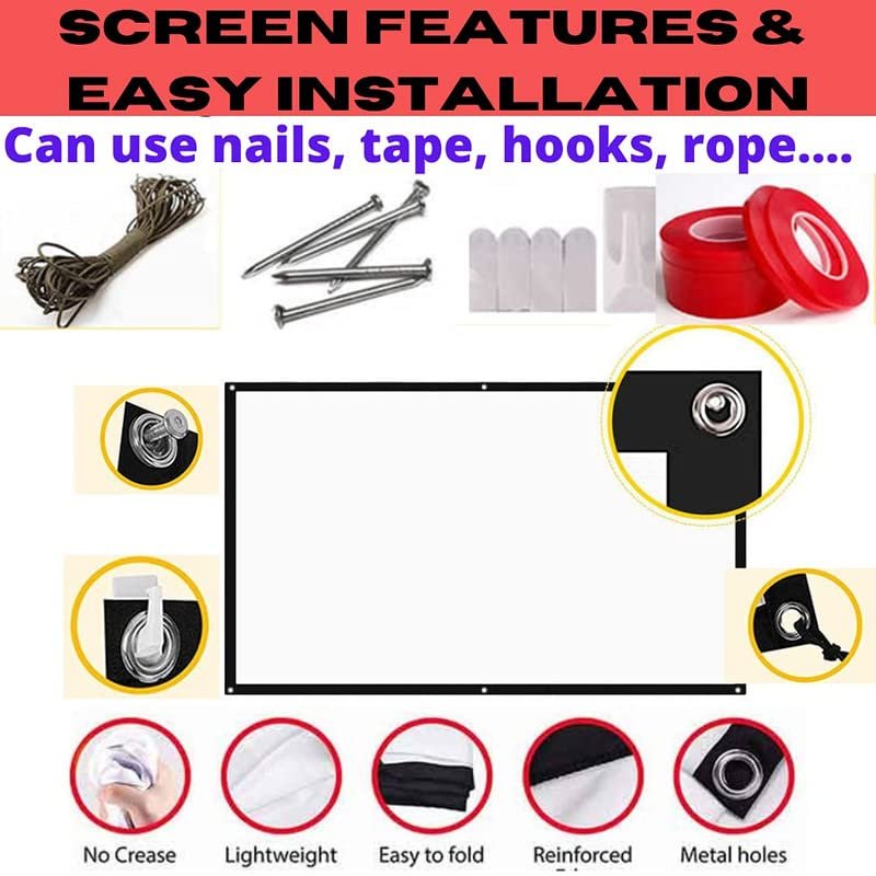 Pixpaq Projector Screen,4K HD 16:9 Portable Video Projector Screen Foldable Anti-Crease Indoor Outdoor Projection Screen for Home, Office, Classroom